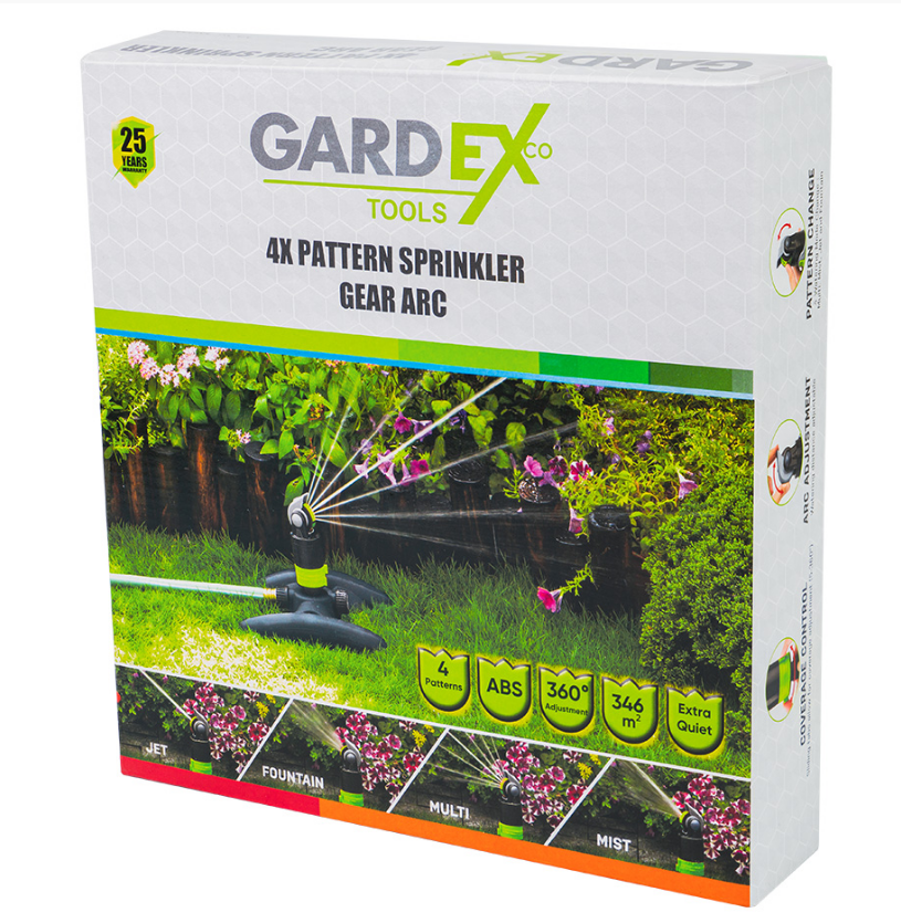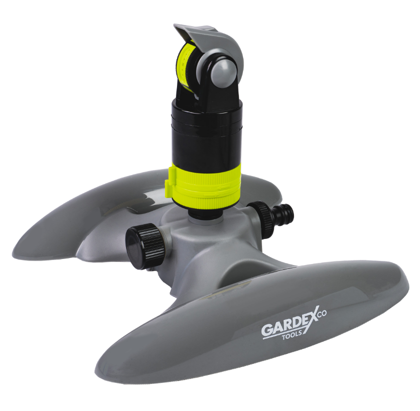 Разпръсквача на Gardex e подходящ за поливане на големи площи до 346 кв.м - с настройка на водната струя. Основата му е изработена от удароустойчив ABS материал. Характеризира се с възможност за настройка от 5° до 360° - градусово завъртане