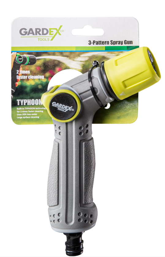 Пистолетите от серията "Typhoon" са единствените на пазара с добавена функция за завихряне на струята. Благодарение на вградената „Typhoon” технология, измиването на площадки в градината става над 2 пъти по-бързо, в сравнение с конвенционалните пистолети, при много по-нисък разход на вода.