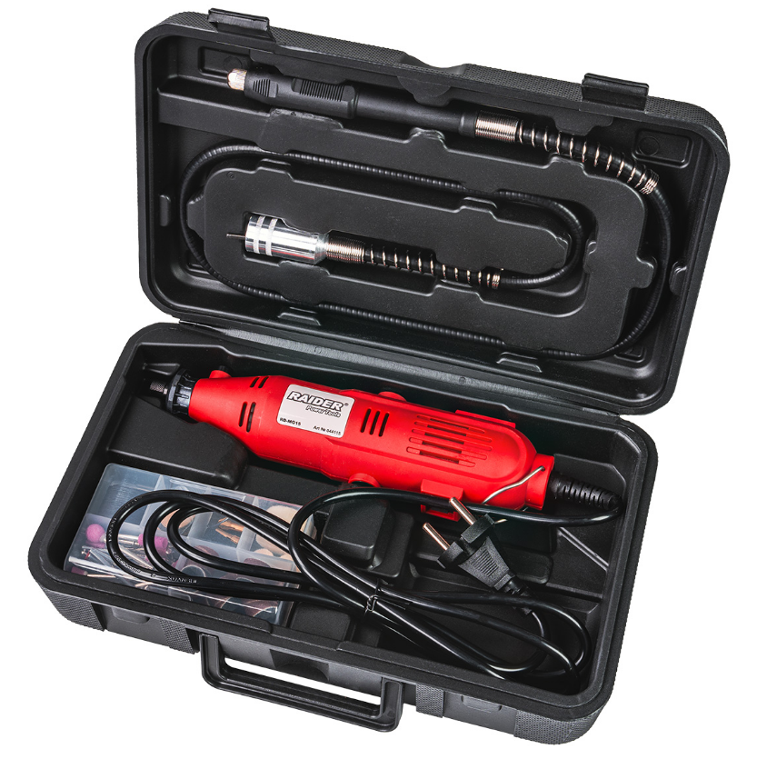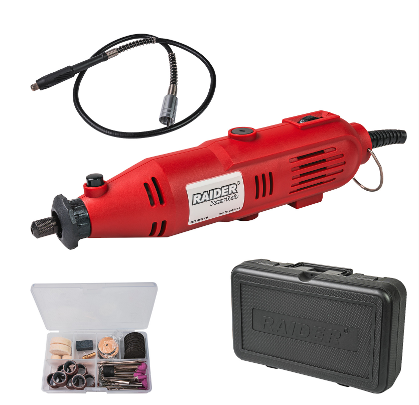 RD-MG15 е високоефективна многофункционална шлифовалка с мощност от 135W и гъвкаво жило, което позволява прецизна обработка дори на трудно достъпни места. Подходяща е както за деликатна работа с меки материали, така и за агресивно шлифоване на твърди повърхности. Шлифовалката е отличен инструмент за професионалисти и хоби майстори, които търсят прецизност, удобство и мощност в едно устройство. Включени 100 аксесоара в комплекта