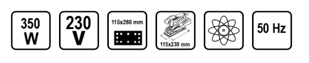 Характеристики Вибрации на празен ход 6000-11000 min⁻¹ Регулиране на оборотите ✅ Обороти на празен ход 6000-11000 min⁻¹ Ексцентрицитет 2.5 mm Отклонение при вибрации 2 mm Прахоулавяне ✅ Размер на шкурката 115x280 mm Шлифовъчен плот 115x230 mm Номинална мощност 350 W Захранващо напрежение AC 230 V Дължина на кабела 2 m Raider - номер на артикул 040111