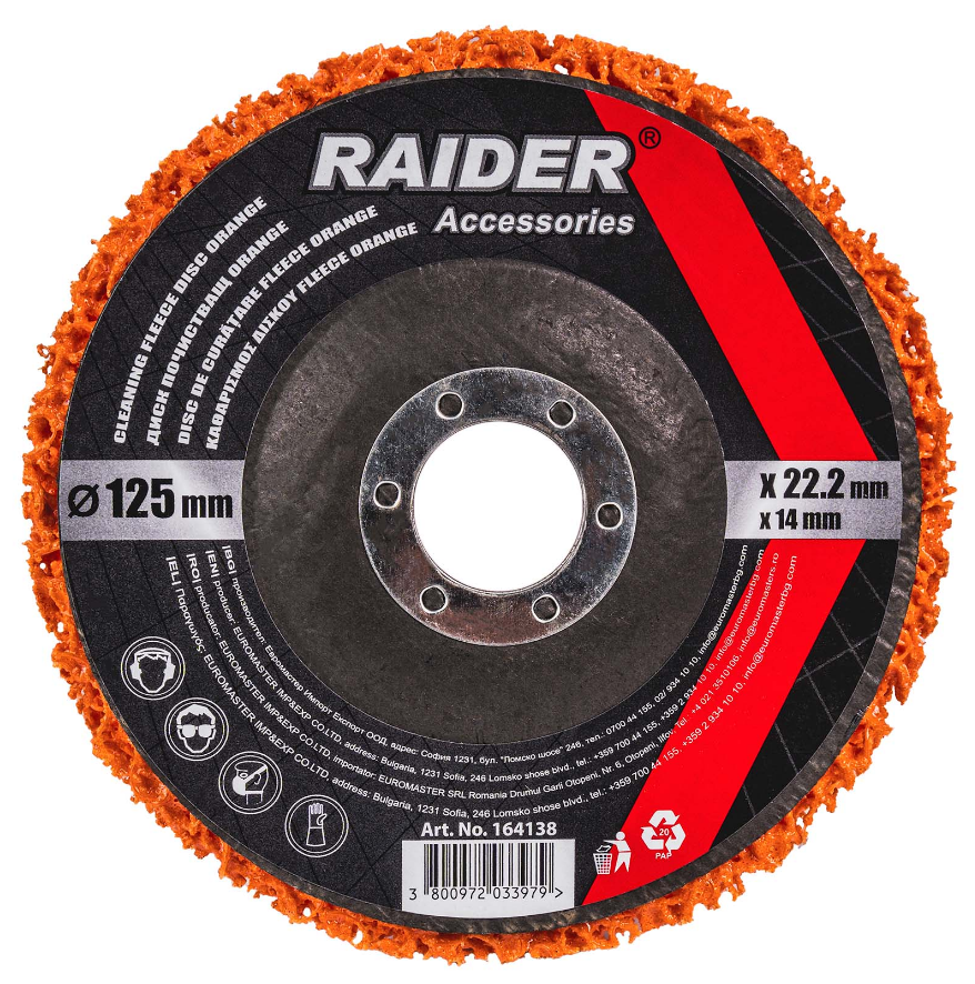 Почистващия диск Orange на Raider е с диаметър 128mm, съвместим с почти всички модели ъглошлайфи.