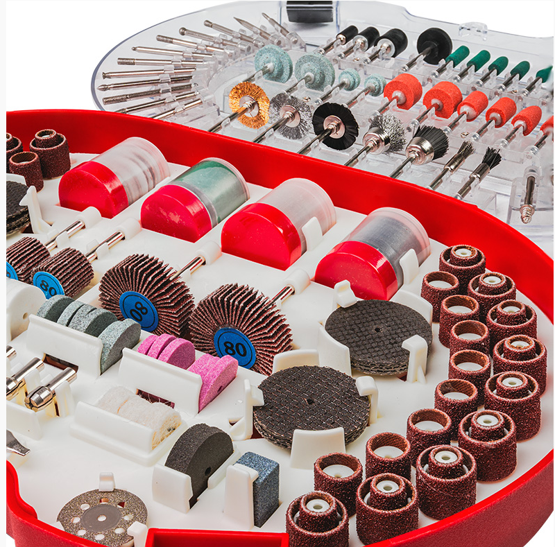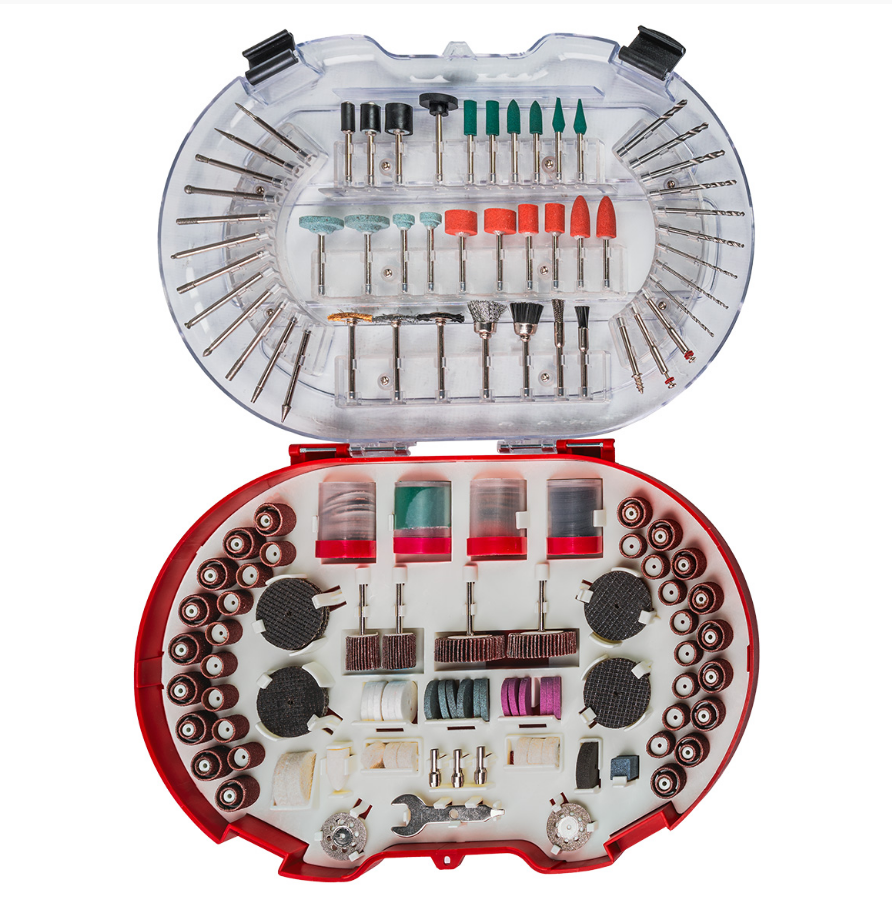 Комплектът от 276 аксесоари е идеалното допълнение за всяка права шлифовалка. Те са съвместими с повечето модели мултифункционални шлифовъчни инструменти, а бързосменяемите цанги и адаптери осигуряват удобство при работа. Всички 276 аксесоара са подредени в компактен и устойчив куфар, предпазващ инструментите от загуба и повреди, като същевременно осигурява лесен достъп до тях.