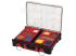 Отличава се от останалите органайзери с това, че притежава 10 сменяеми кутии (2 големи и 8 малки), а прозрачният капак предпазва от прах, вода и мръсотия , когато е затворен.