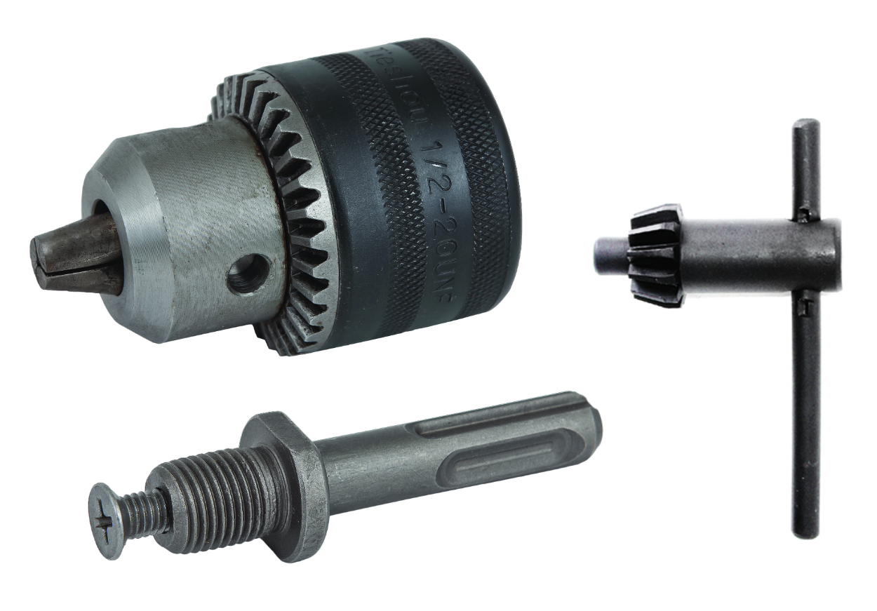 Патронника за бормашина на Raider дава възможност за използване на свредла с цилиндрична опашка. Монтира се лесно с включения в комплекта адаптер SDS-plus. Зъбния венец с широчината на захващане ( 1,5-13 mm) му осигурява по-голяма гъвкавост. В комплекта е включен адаптер.