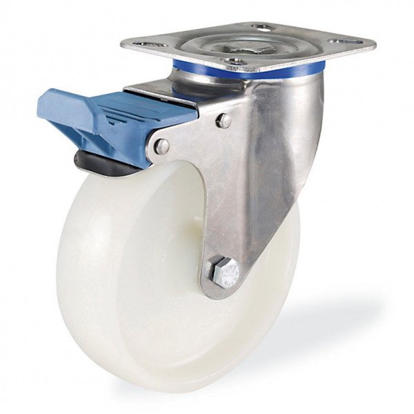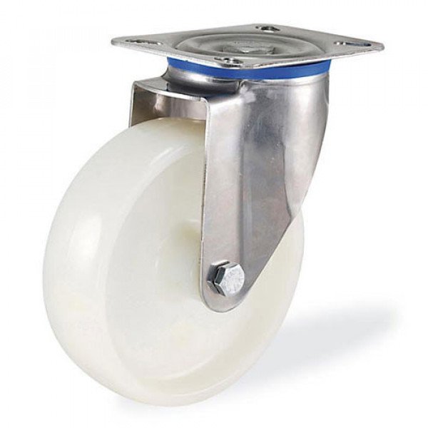 Колело ходово с планка, джанта - бял полиамид, гума -бял полиамид, обикновено лагеруване