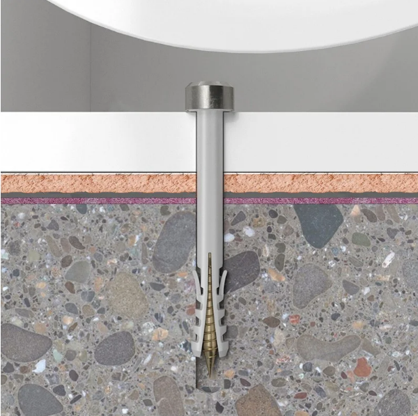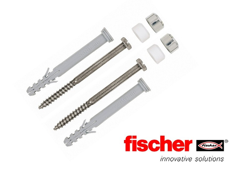 Комплекта за тоалетна чиния, мивка и биде S 8 RD 80 WCR на FISCHER се състои от дюбел, винт с болт, втулка и гайка. Изравнителната втулка с яка предотвратява директния контакт между керамиката и винта, като по този начин предпазва керамиката от надраскване, счупване или друга повреда. UX дюбела е подходящ за всички масивни и кухи строителни материали. Материала, от който е изработен дюбела е от висококачествен найлон, устойчив на стареене.