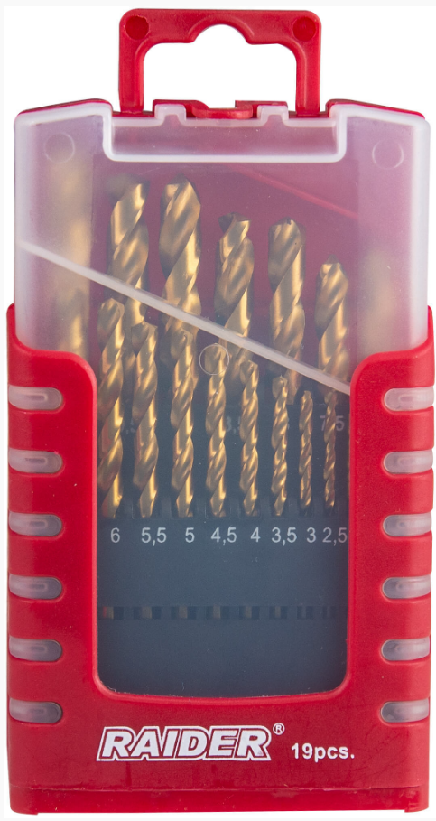 Raider Свредла за метал 19бр ø1.0-10mm HSS + TIN комплект