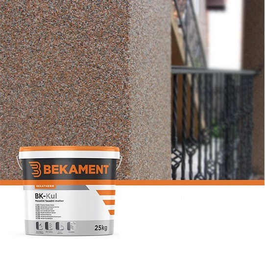 Декоративна мозаечна мазилка от поливинилхлорид за трайна защита на фасадни повърхности.