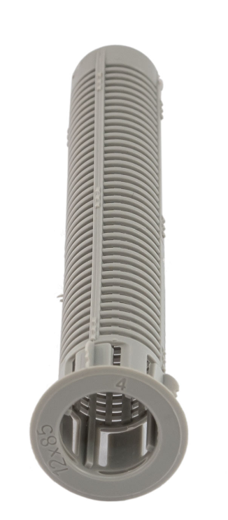 Its advantage is that the grid structure allows for an even distribution of the mortar in the drilled hole and a secure hold.