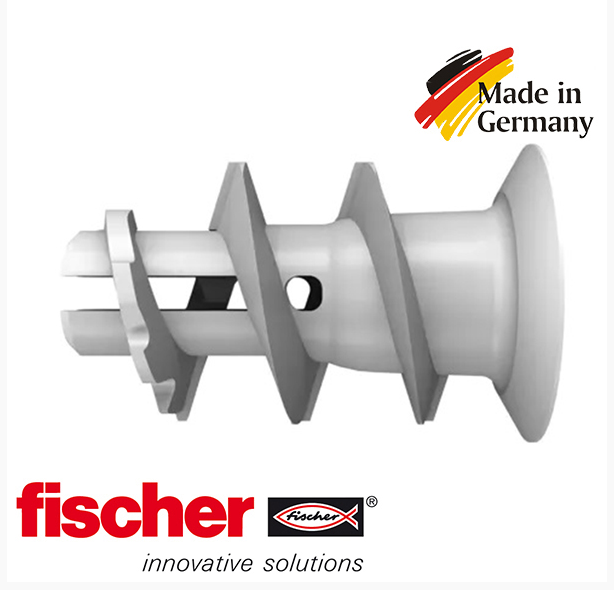 The Fischer GK plasterboard dowel is made of high-quality nylon. It is screwed into a pre-positioned installation. It holds, creating the perfect shape to fit into. The short fixing length means that only a small space is needed behind the board. The Fischer GK can be used with wood, sheet metal and chipboard screws with a thickness of 4 to 5 mm. It is suitable for fixing lighting and electrical installations.