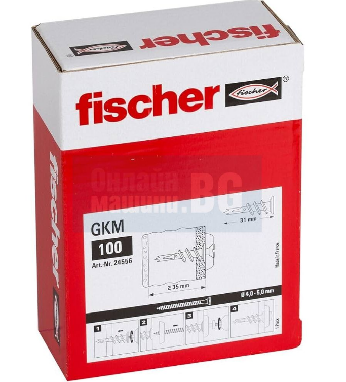Fischer GKM metal plasterboard dowel with a size of 13 x 35 mm.