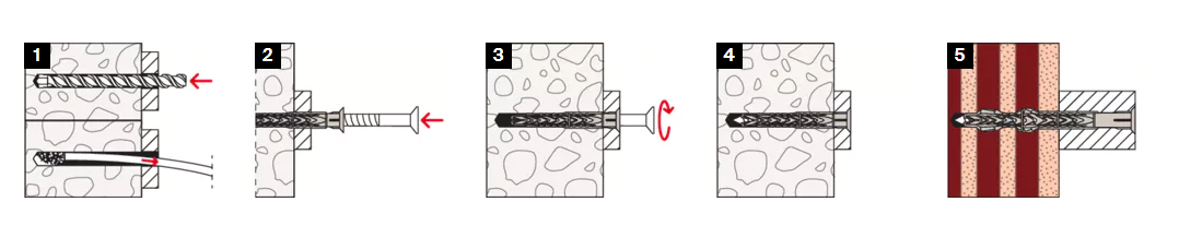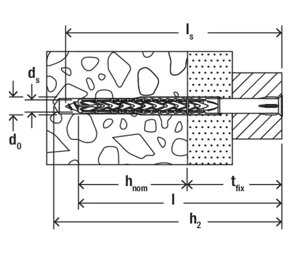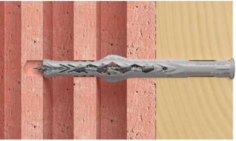 The long expansion element makes the SXRL versatile because the loads are applied evenly to the building material, and the ribs prevent the dowel from rotating during installation.