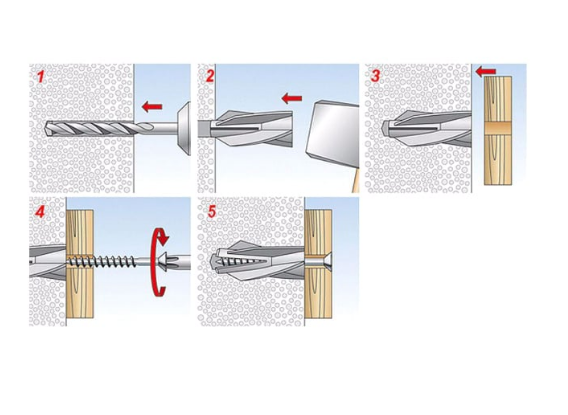 The outer ribs of the dowel ensure its secure attachment to the material, it is installed using a hammer