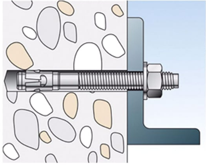 When the torque is applied, the cone bolt is pulled into the expansion clamp and expands it towards the wall of the hole.
