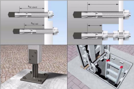 The standard anchorage depth achieves maximum load capacity. This means fewer fixing points are required. The long thread balances the component tolerances and allows for distance mounting. Installation time is reduced to a minimum and flexibility is increased.