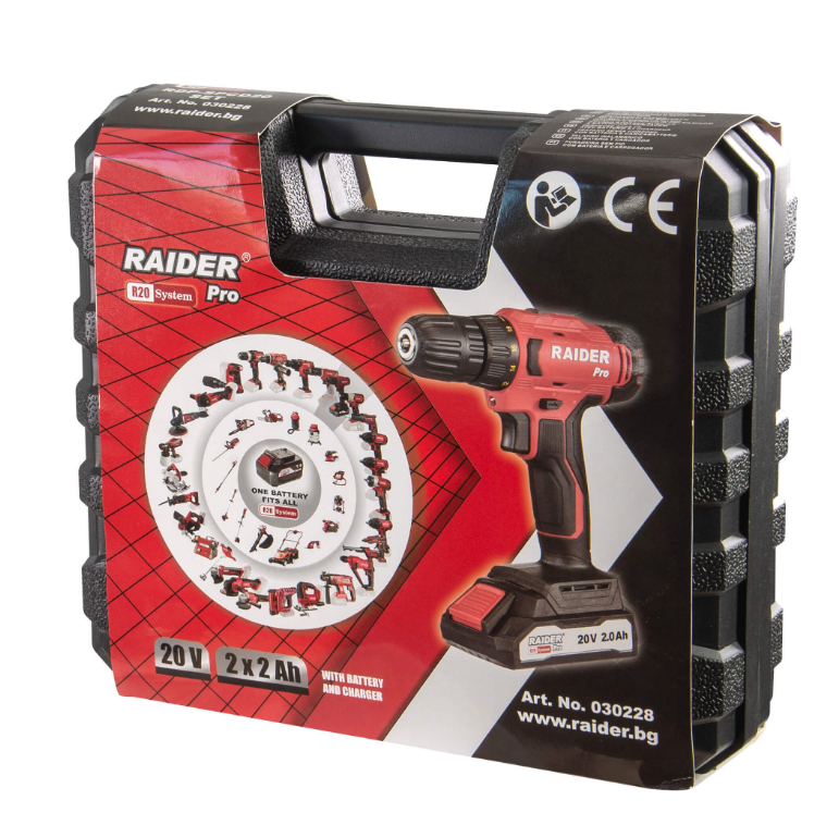 Raider R20 RDP-SPCD20 Cordless drill with 2 batteries and case - 030228 Nomenclature number: 142030228