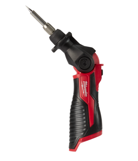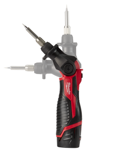 Milwaukee's cordless soldering iron has a temperature range of up to 400℃ and heats up in 20 - 30 seconds. Offers 3 locking positions on the head, for working in different orientations - 0°, 45° and 90°.