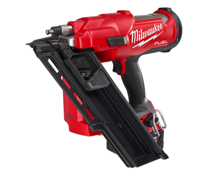 The Milwaukee M18FFN-0C cordless brushless nailer has a supply voltage of 18 V and is designed for nails with a length of 50 to 90 mm (diameter 2.8 - 3.3 mm) that fit an angle magazine at 30 ° or 34 °.