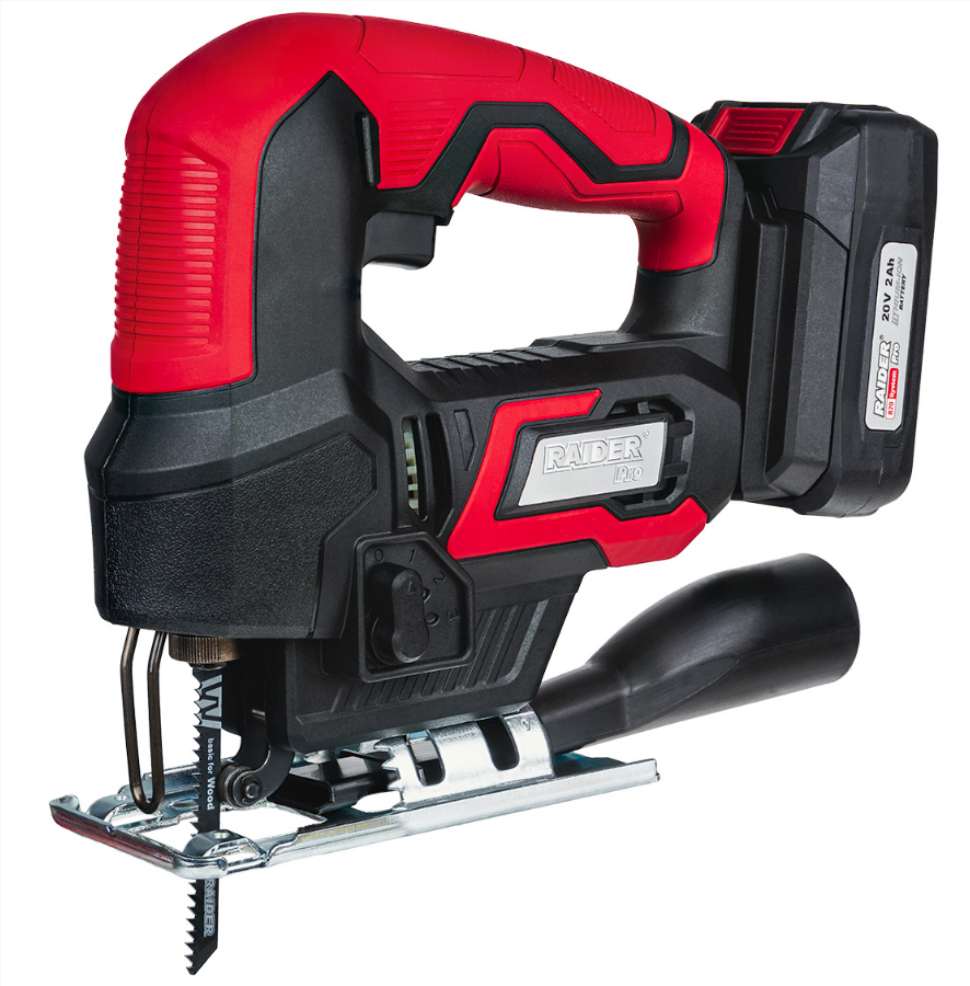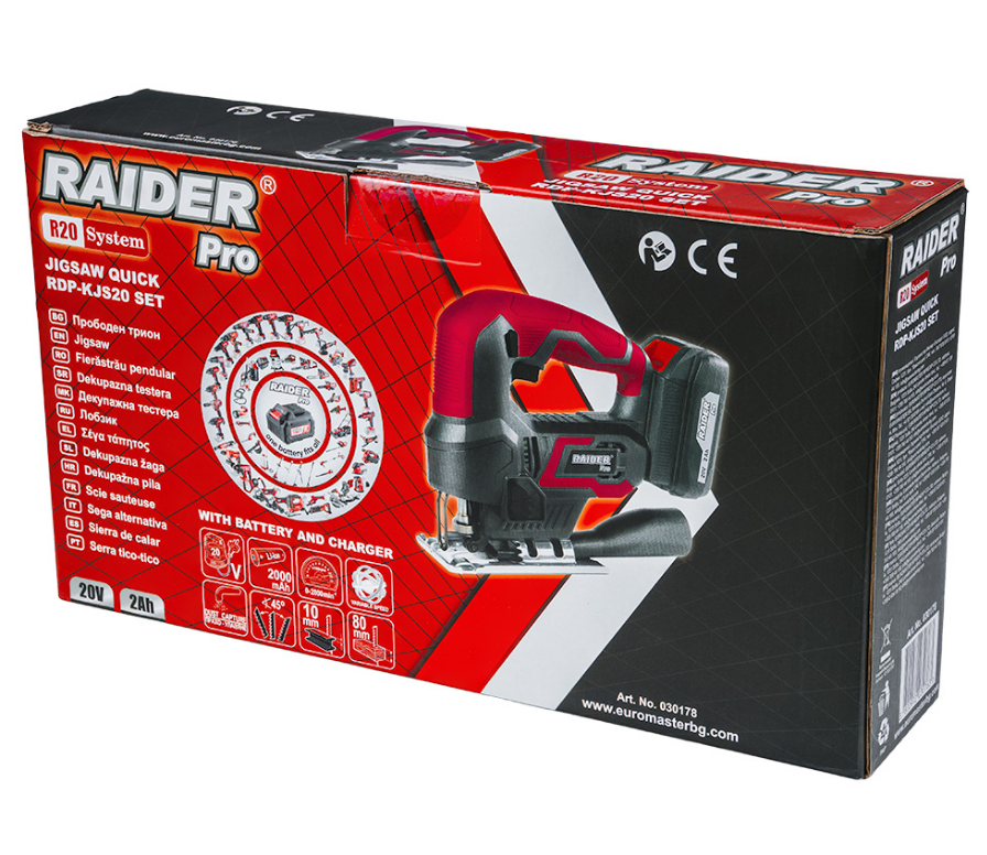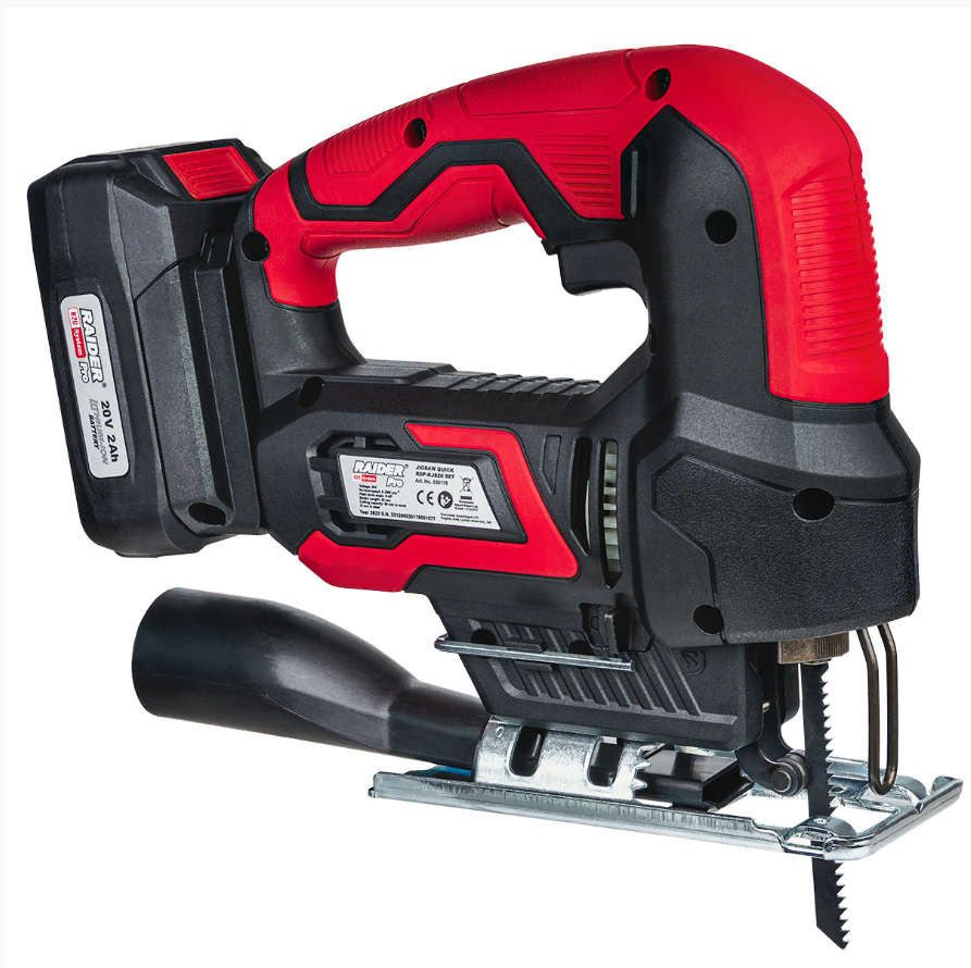 The Raider RDP-KJS20 jigsaw is equipped with a powerful motor capable of cutting up to 80 mm in wood and 10 mm in metal, making it suitable for a wide range of applications. All machines in the Raider Pro R20 series operate with the same type, one or more, lithium-ion rechargeable batteries with an output voltage of 20V.