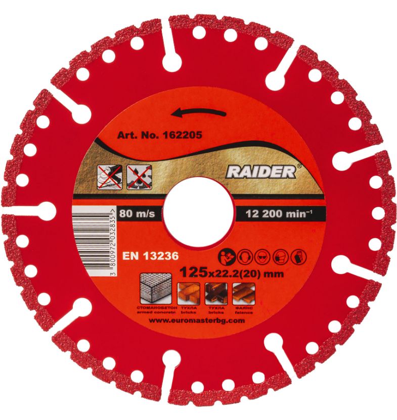 The Raider Pro diamond blade is designed for professional and amateur use. Suitable for cutting a variety of construction materials, including: concrete, stone, granite, marble and tiles.