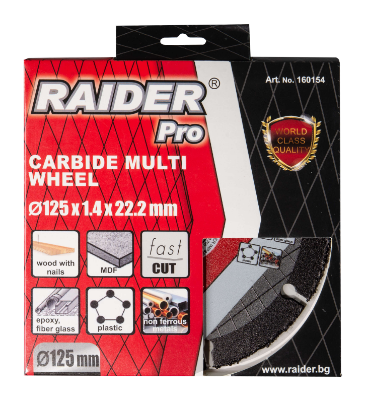Raider's Carbide multi wheel is made using laser melting technology, featuring a carbide-coated edge. It is suitable for cutting wood with nails, plastic, drywall and copper pipes