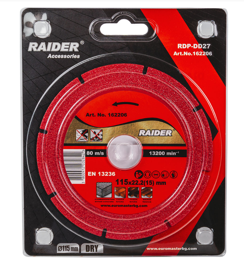 Raider dry cutting diamond blade is characterized by its strength, wear resistance and slim design, providing precise and straight cuts.