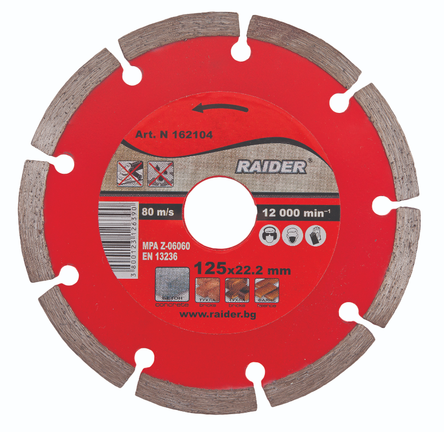 The Raider DRY diamond blade is suitable for dry cutting of ceramic tiles, fine stone ceramics, marble, granite, concrete, faience, brick.