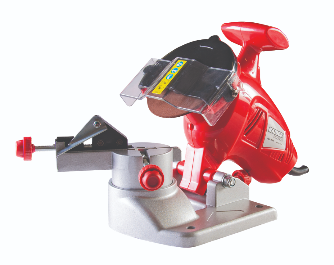 The Raider RD-CSS01 model is compact, durable, and reliable when it comes to precise chain sharpening. All cutting links of the chain can be sharpened without re-tightening, thanks to the rotating, clamping device (equipped with a scale)