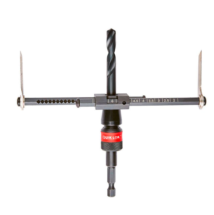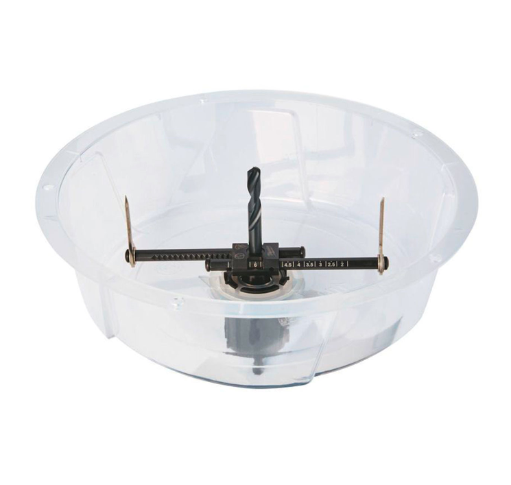 MILWAUKEE adjustable core bit for cutting large diameter holes in plasterboard for air conditioning pipes, fans, lighting fixtures and ceiling speakers.