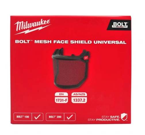 The Milwaukee Mesh Face Shield provides full face protection with a panoramic field of vision. It is part of the BOLT system, which provides compatibility with a wide range of accessories and allows for easy installation and removal.